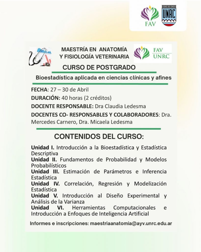 Informes e inscripciones: maestriaanatomia@ayv.unrc.edu.ar